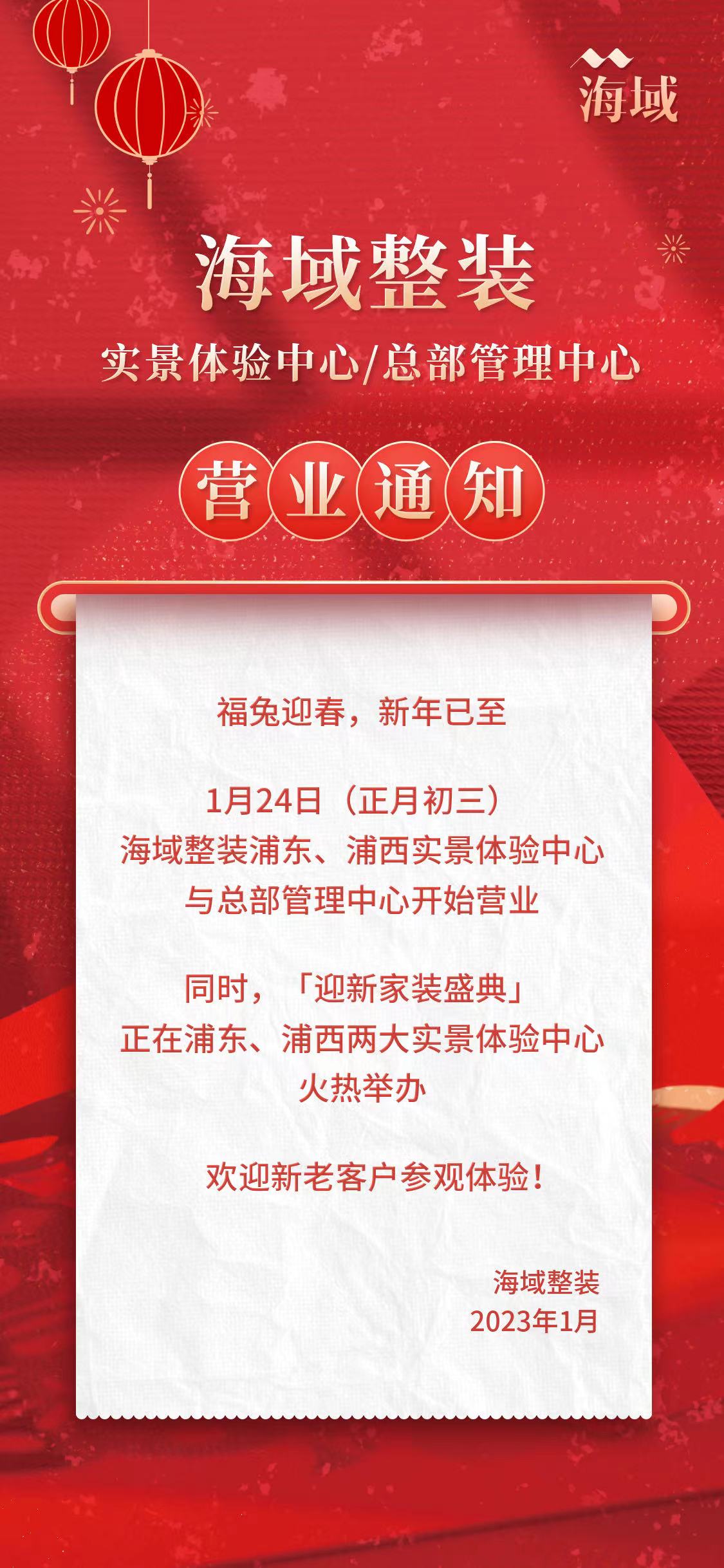 实景体验中心/总部管理中心2023营业通知